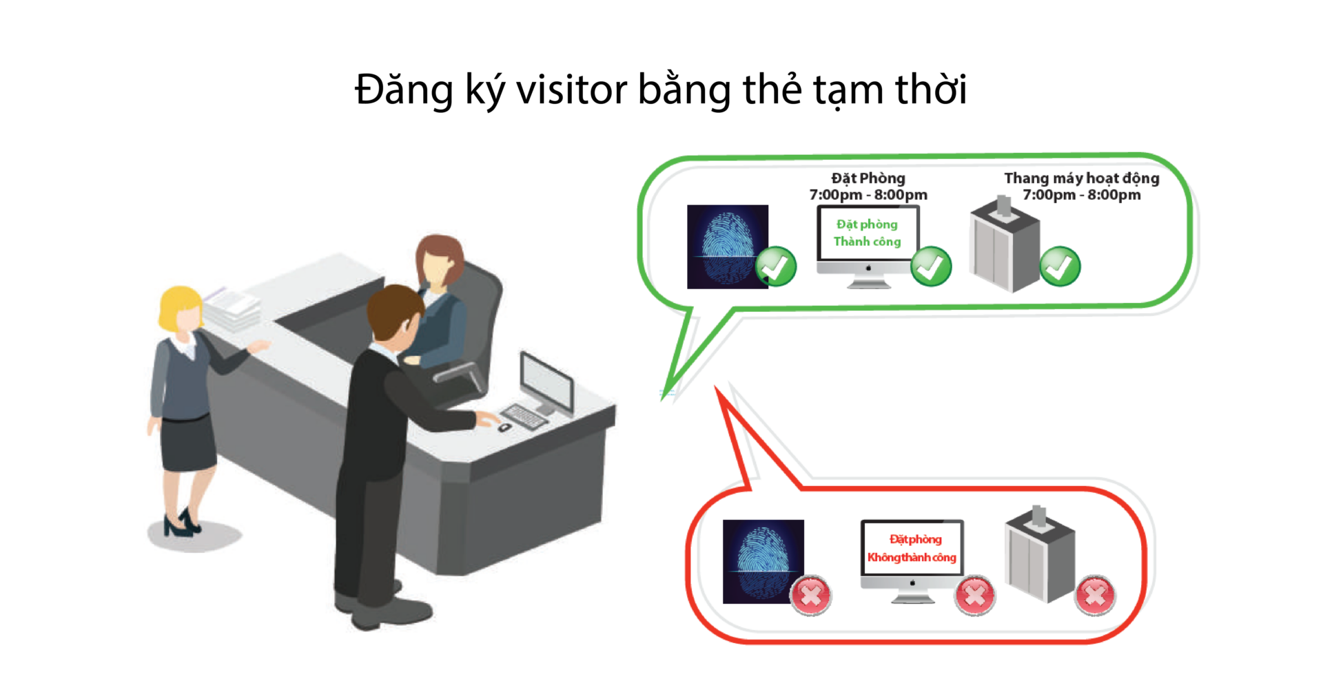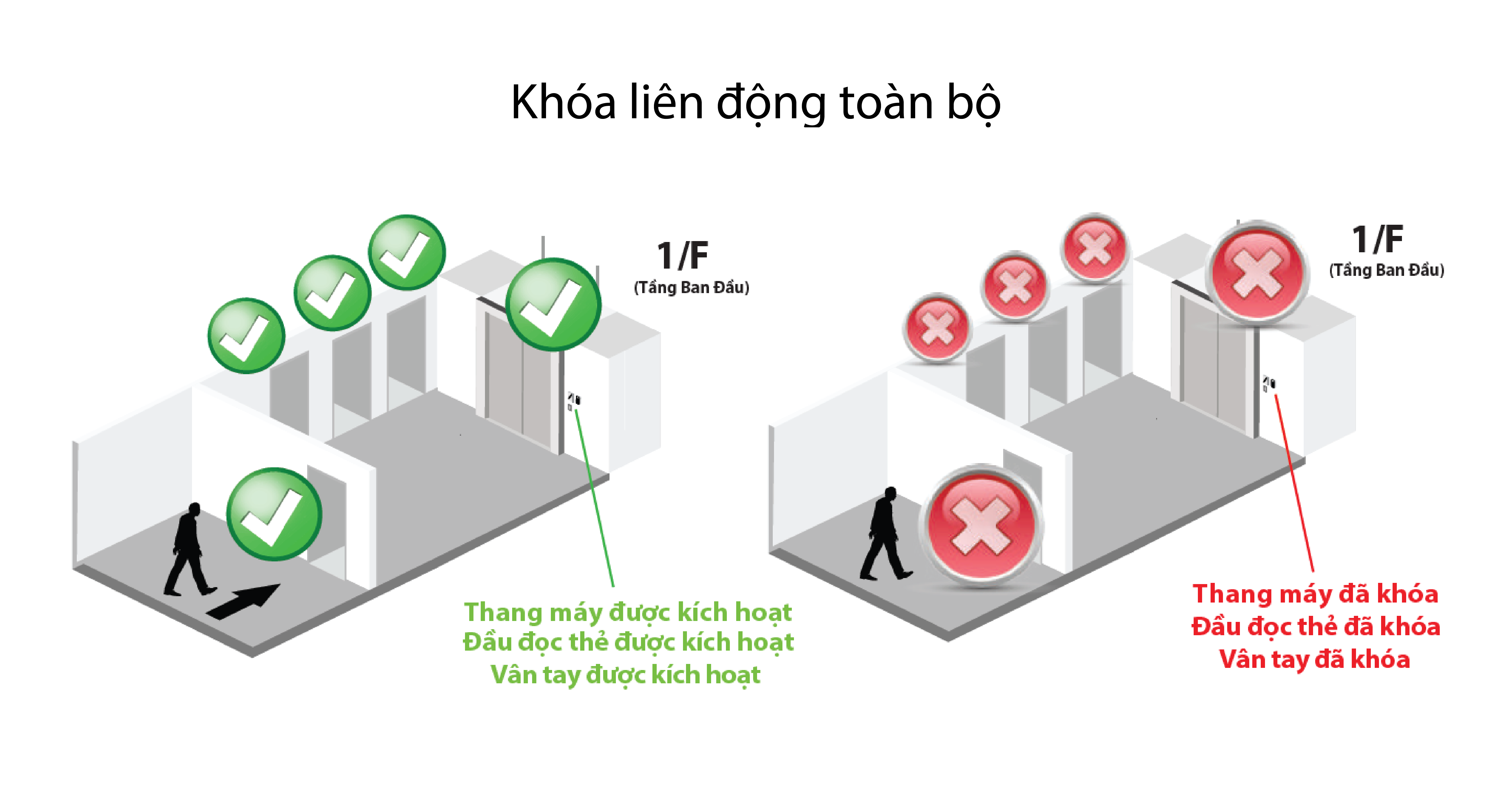 - Đối với người không có thẻ hoặc chưa đăng ký vân tay thì không sử dụng được thang máy hoặc bị hạn chế sử dụng.