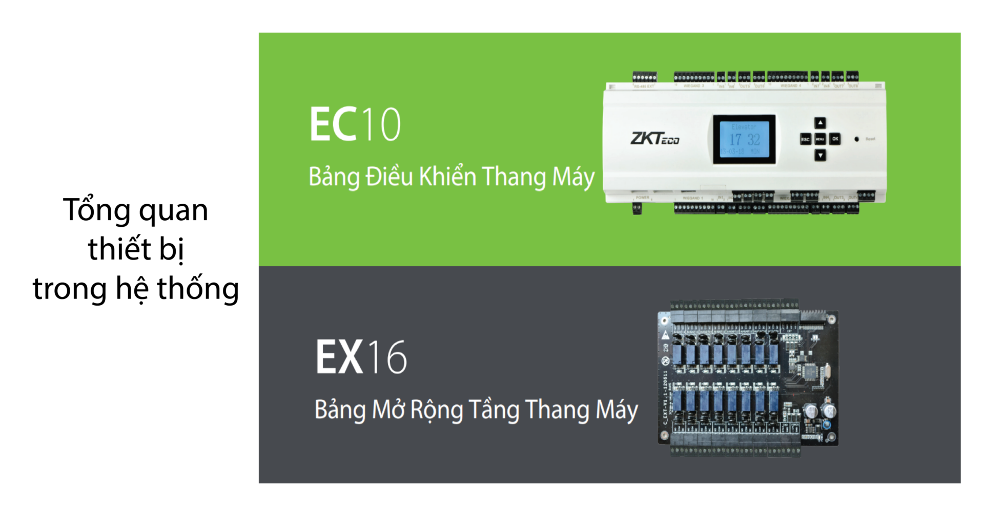 Được thiết kế đặc biệt cho hệ thống điều khiển thang máy, thiết bị EC10 và thiết bị mở rộng EX16 cung cấp giải pháp kiểm soát truy cập an toàn, linh hoạt với chi phí tối ưu.