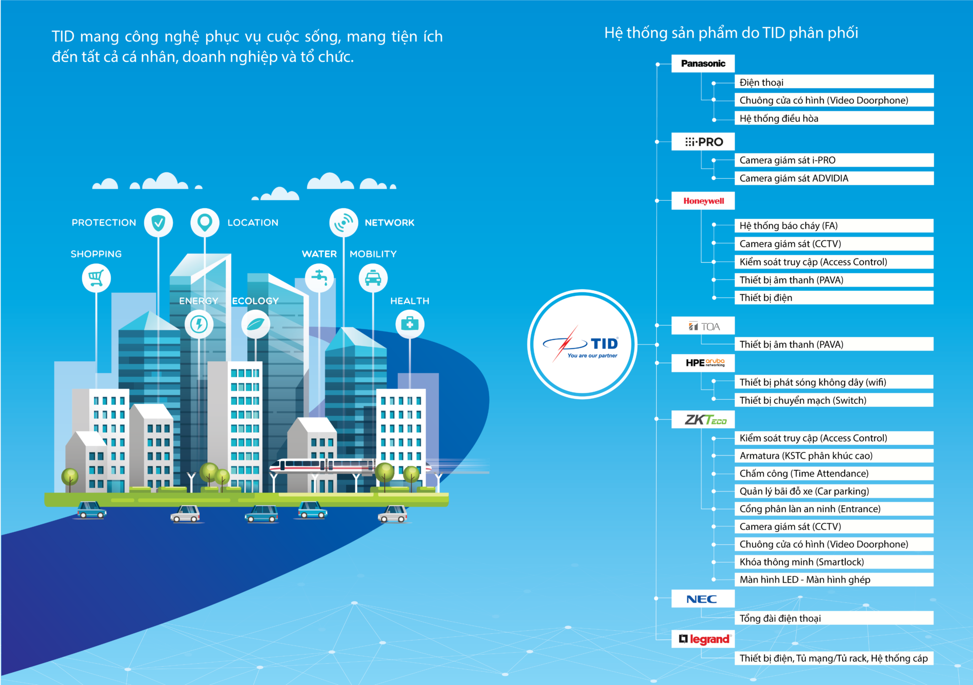 Công Ty TNHH Thương Mại Đầu Tư Và Phát Triển (TID CO., LTD) được thành lập vào năm 1993, hoạt động chính trong lĩnh vực phân phối thiết bị an ninh và viễn thông. Từ khi thành lập đến nay, TID vinh dự trở thành Đối tác của các thương hiệu công nghệ hàng đầu thế giới như: Panasonic, i-Pro, Honeywell, Hikvision, HPE Aruba Networking, TOA, ZKTeco, NEC, Legrand.