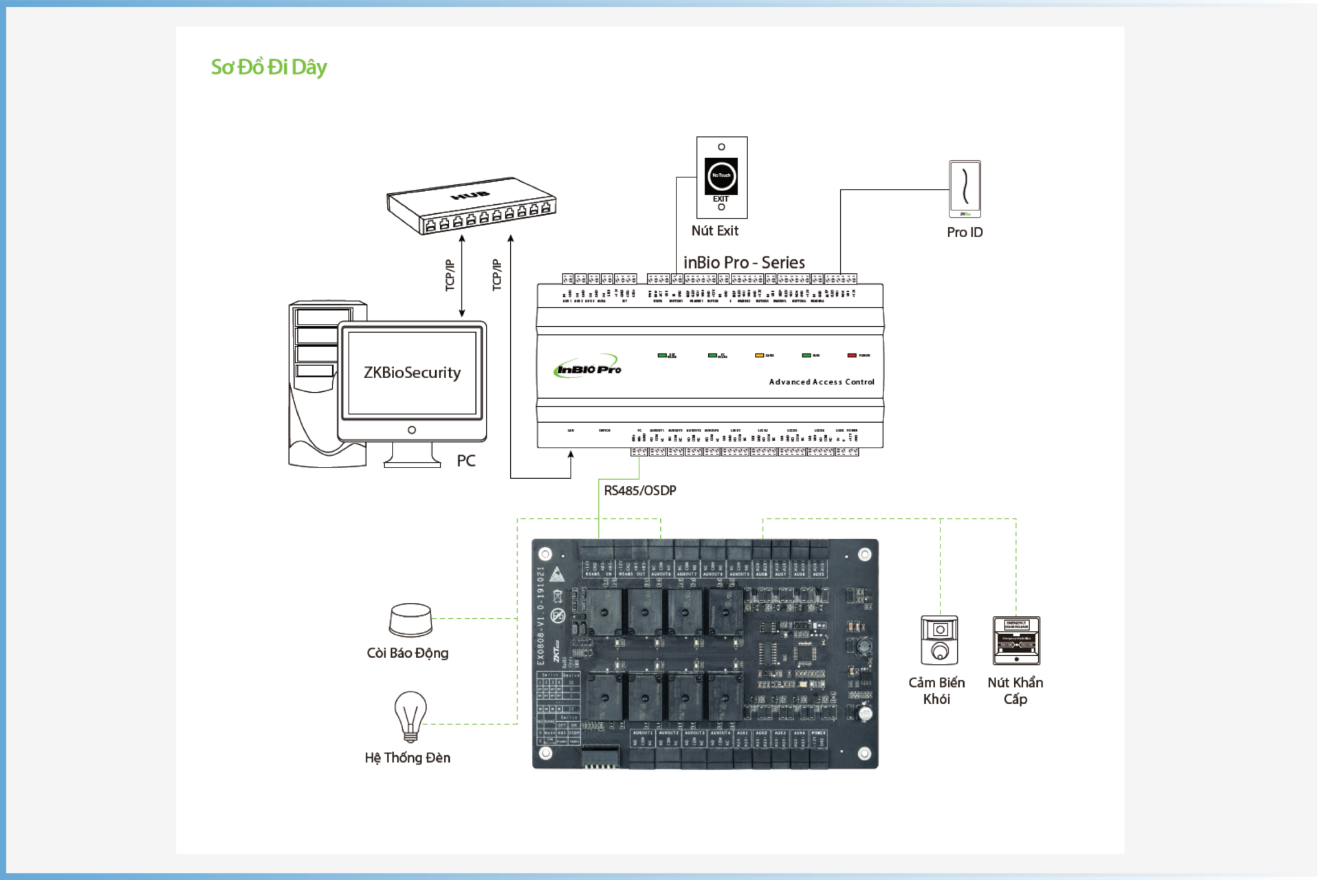 Bảng mở rộng EX0808 bao gồm 8 đầu vào AUX và 8 đầu ra AUX. Thiết bị giúp làm giảm chi phí của các dự án cần thiết để đáp ứng các yêu cầu I/O mở rộng. Thiết bị có thể cung cấp giải pháp kiểm soát truy cập chuyên nghiệp với bảng inBio Pro, bảng C3 Pro và phần mềm ZKBioSecurity, một nền tảng kiểm soát truy cập tất cả trong một rất mạnh mẽ.