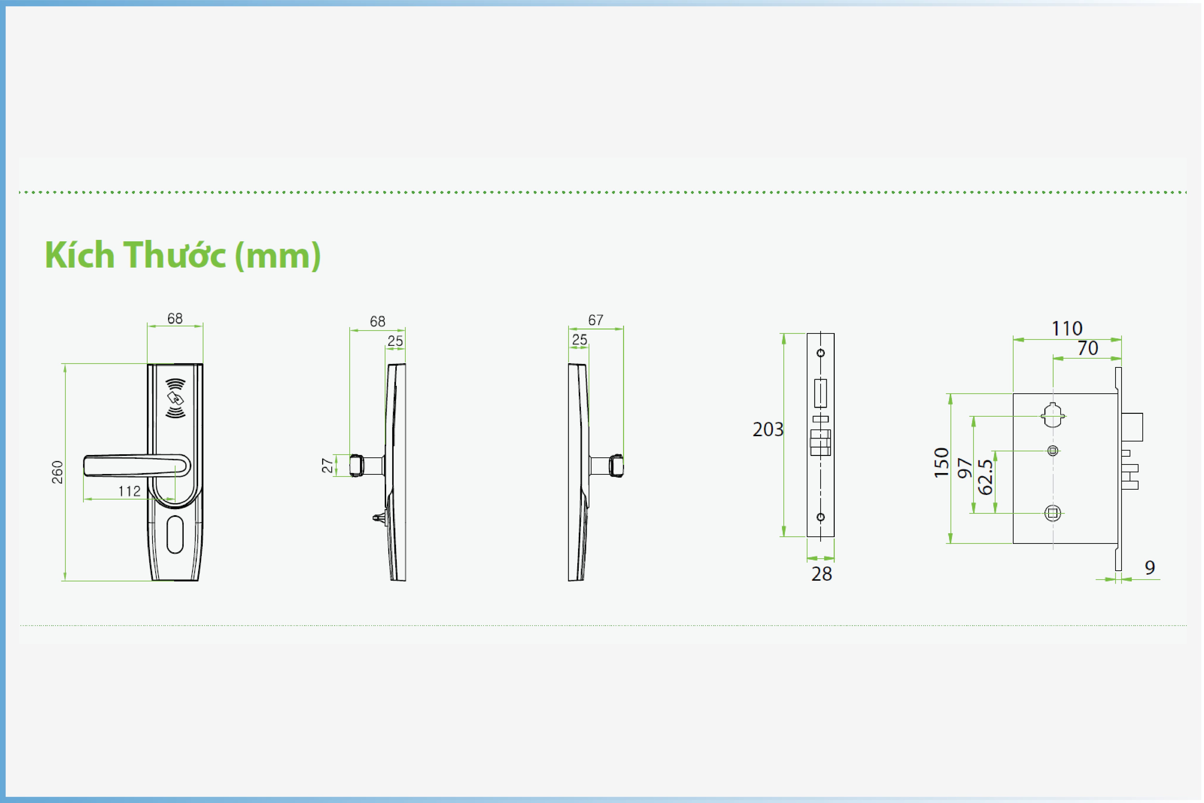 • Đ sâu ruột khóa (Backset): Kích thước tiêu chuẩn 70mm.