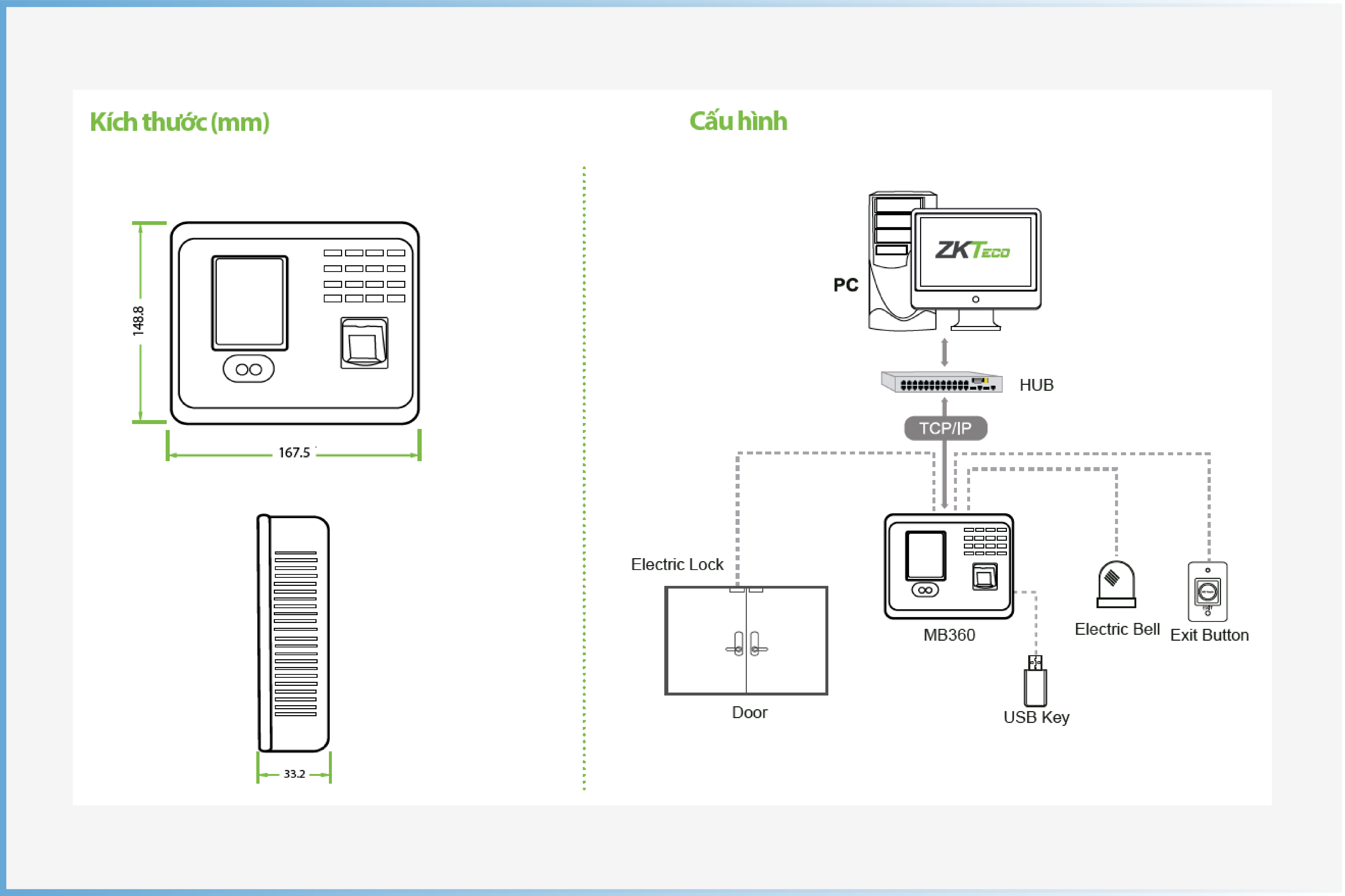 Cấu hình và kích thước sản phẩm: