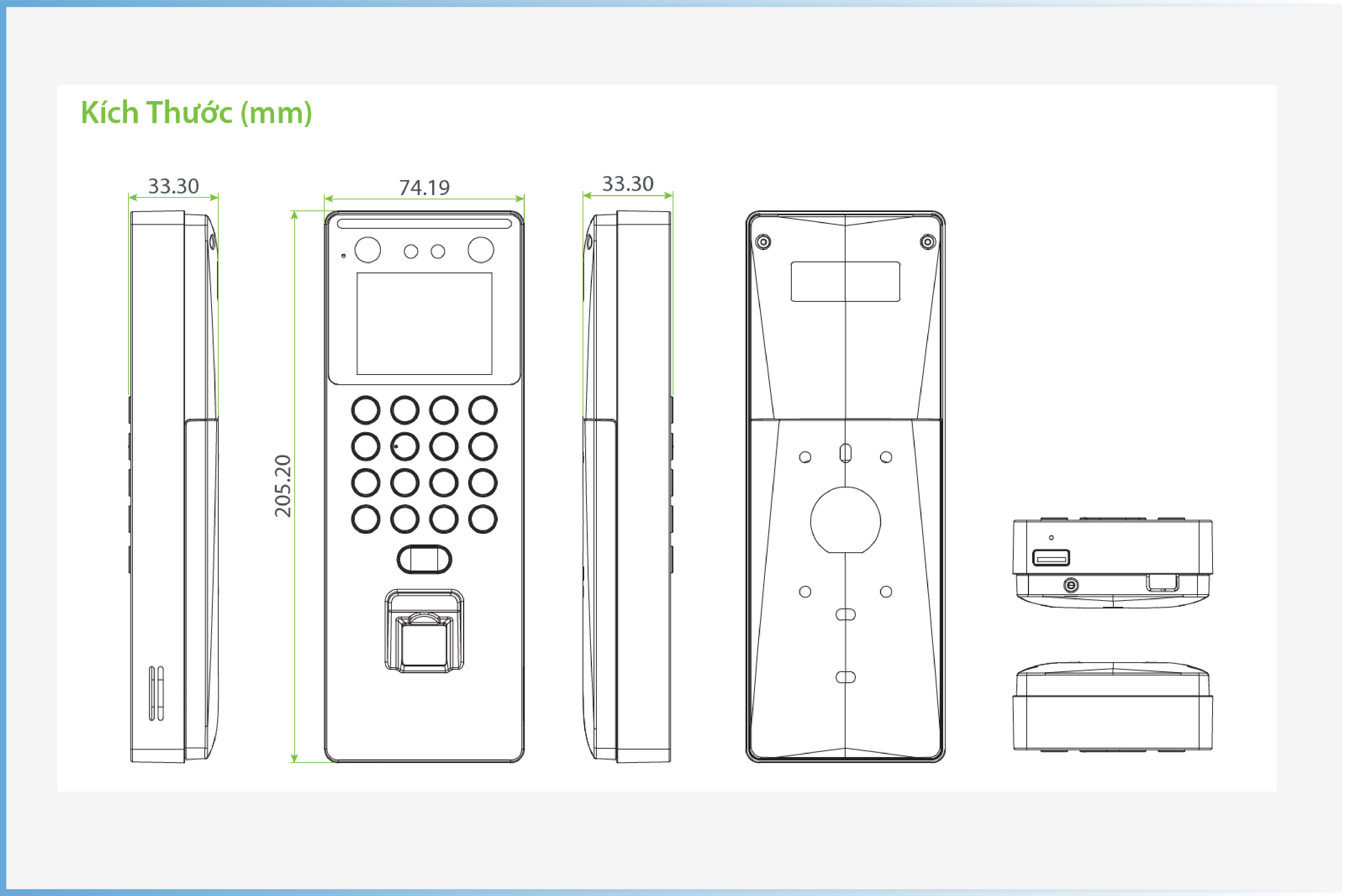 - Nhiều phương thức xác thực: Khuôn mặt / Vân tay / RFID / Mật khẩu