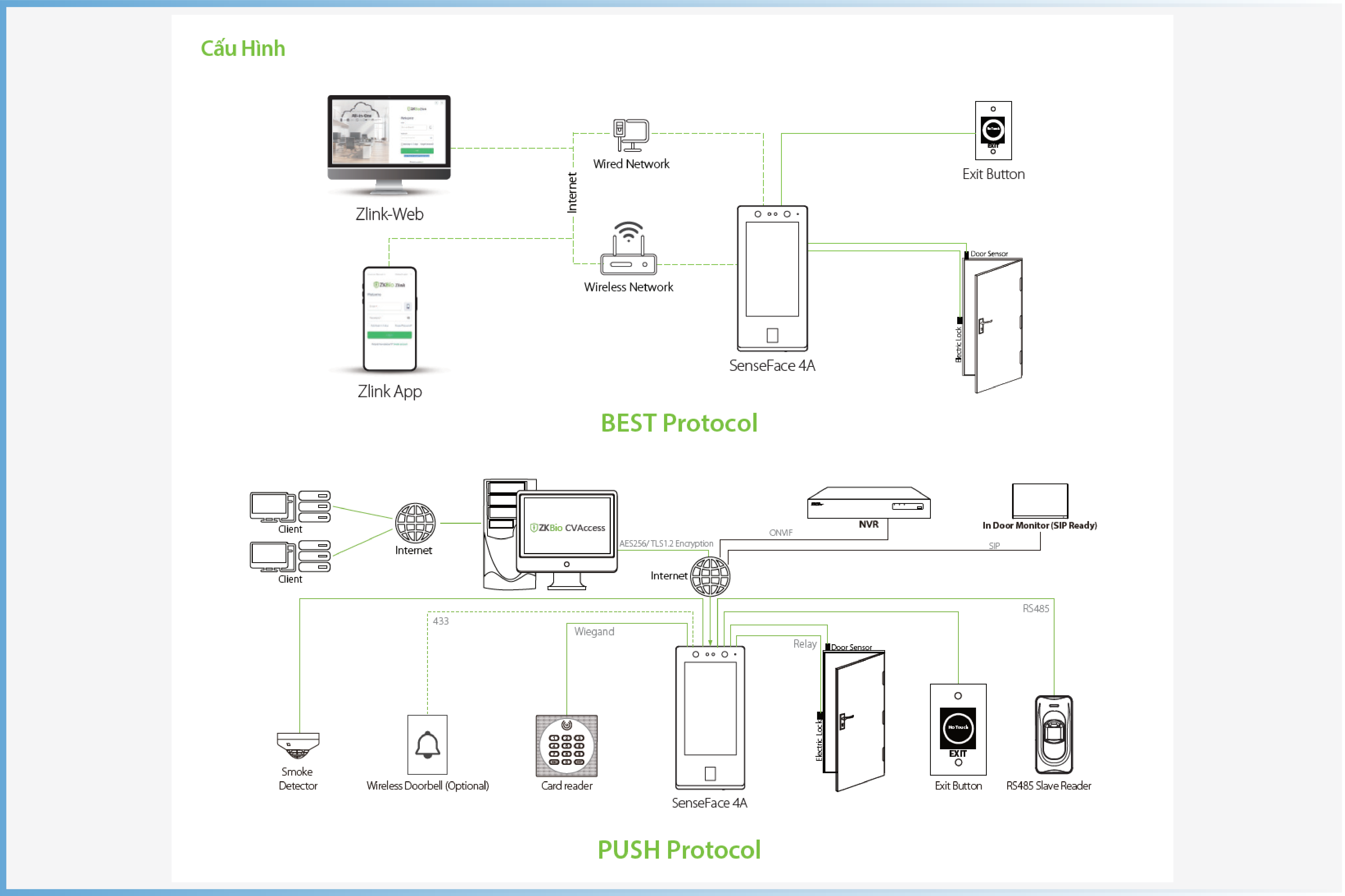 Ngoài ra, SenseFace 4 Series hỗ trợ nhiều giao thức truyền thông. Firmware của thiết bị có bộ đẩy AC (Kiểm Soát Truy Cập) và có thể chuyển đổi sang bộ đẩy (Chấm Công) và nó tương thích với nhiều phần mềm AC hoặc TA khác nhau. Nó có thể thay đổi sang giao thức TỐT NHẤT để liên kết với ZKBio Zlink (mô-đun AC).