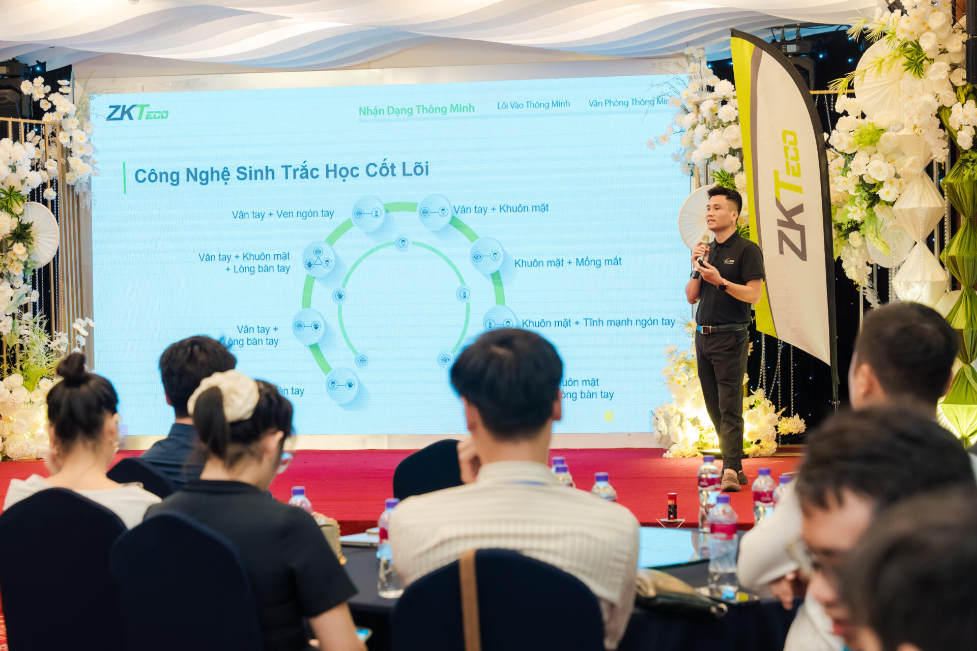 Trong không gian hội thảo chuyên sâu, các khách mời đã có dịp trực tiếp trải nghiệm hệ sinh thái sản phẩm và giải pháp an ninh thế hệ mới đến từ ZKTeco – thương hiệu toàn cầu với năng lực công nghệ nổi bật trong lĩnh vực kiểm soát ra vào, nhận diện sinh trắc học và chấm công thông minh.